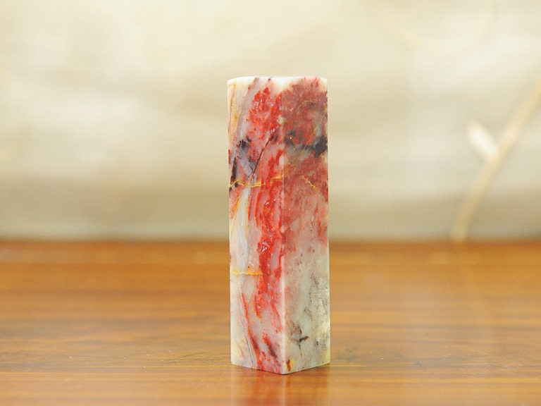 鮮血のように鮮やかな赤を発色する石。主に昌化石だが、巴林石にも見られる。田黄よりは圧倒的に入手しやすいが高級印材には変わりない。当然、偽物も出回っている。