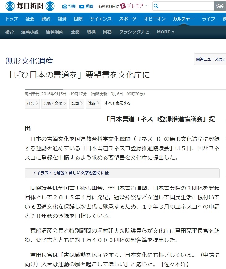 日本の書道業界がユネスコ登録に動く